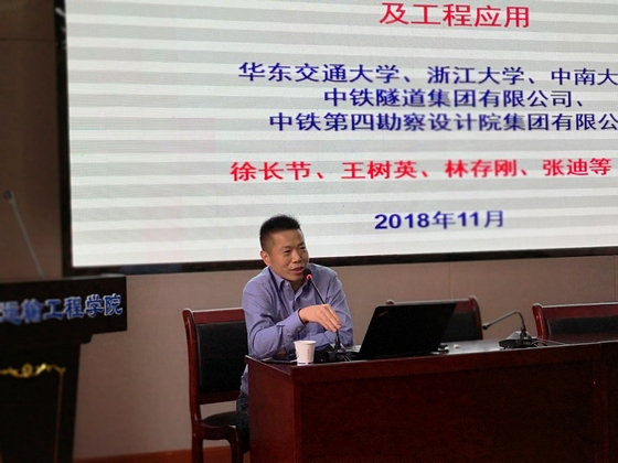 11月9日下午,受我校土木学院、交通学院邀请,教育部长江学者、国家杰出青年科学基金项目获得者、华东交通大学土木建筑学院院长徐长节教授莅临工科二号楼B301学术报告厅,为师生们作了题为《复杂地层盾构隧道变形控制与施工关键技术及工程应用》的学术报告。报告会由土木学院副院长蒋友宝教授主持,交通学院党委书记胡庆国教授、副院长何忠明教授,土木学院副院长王桂尧教授,岩土与隧道工程系张军教授、张永杰、黄阜与曾铃副教授、晏莉、尹平保等老师以及研究生、本科生共120余人参与了本次学术交流会。